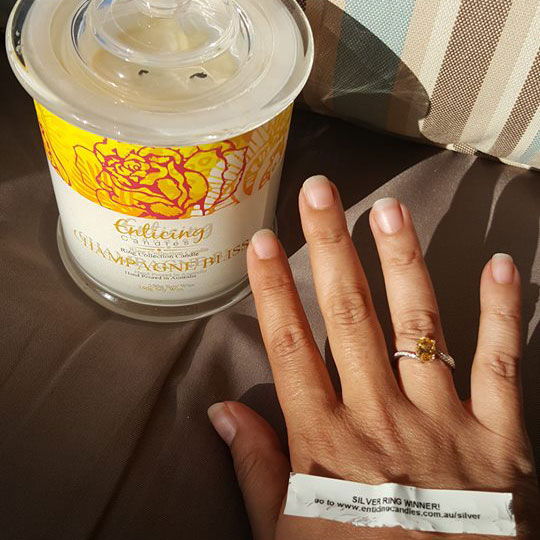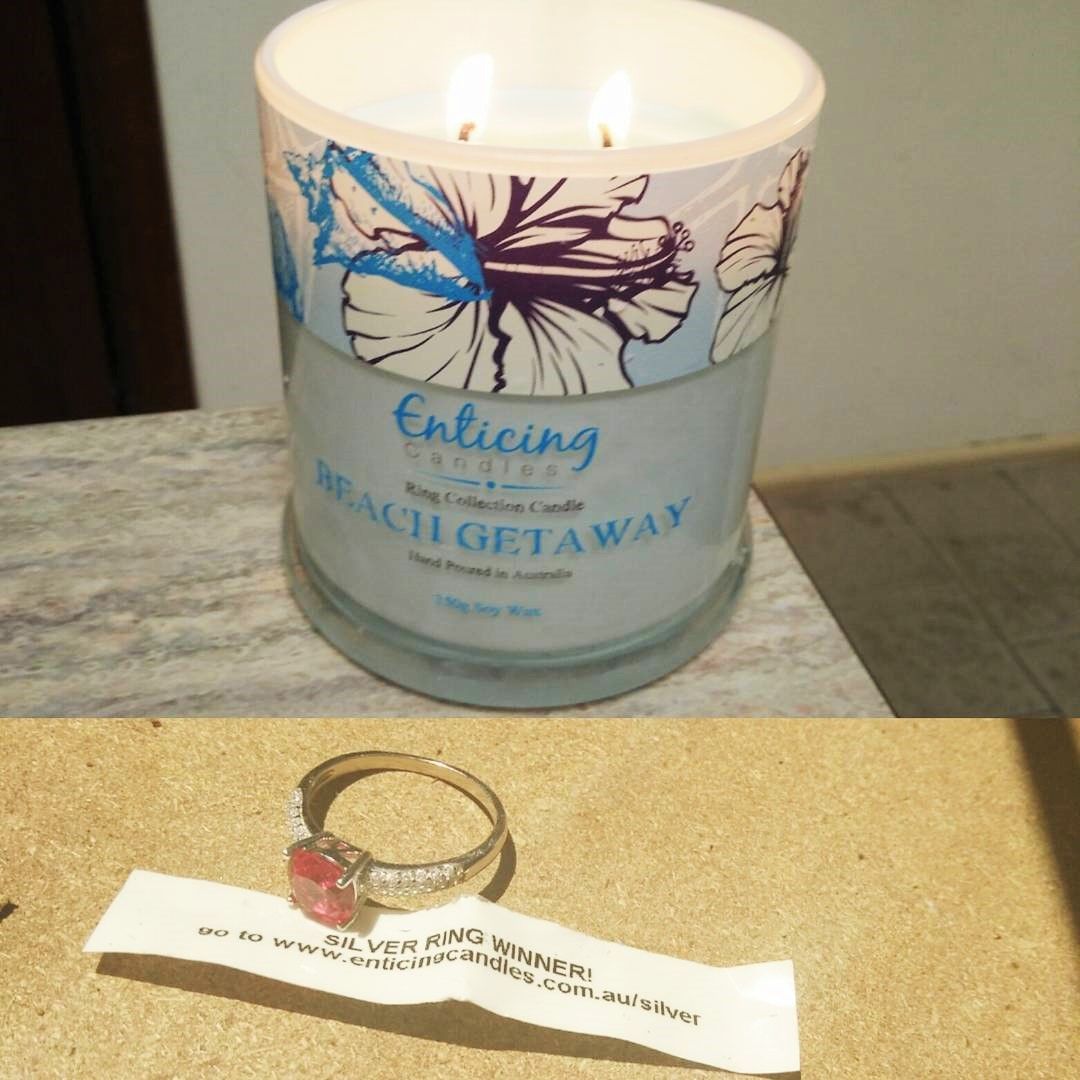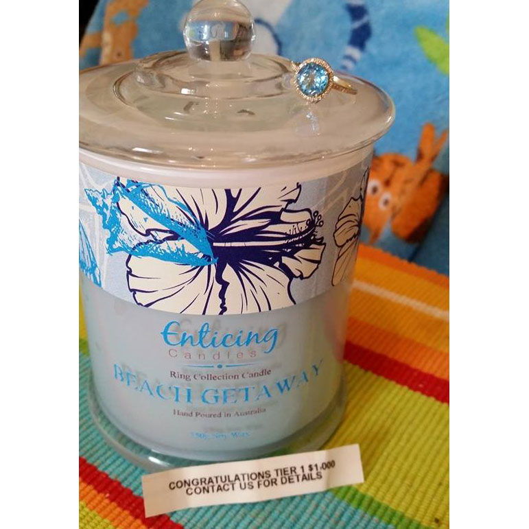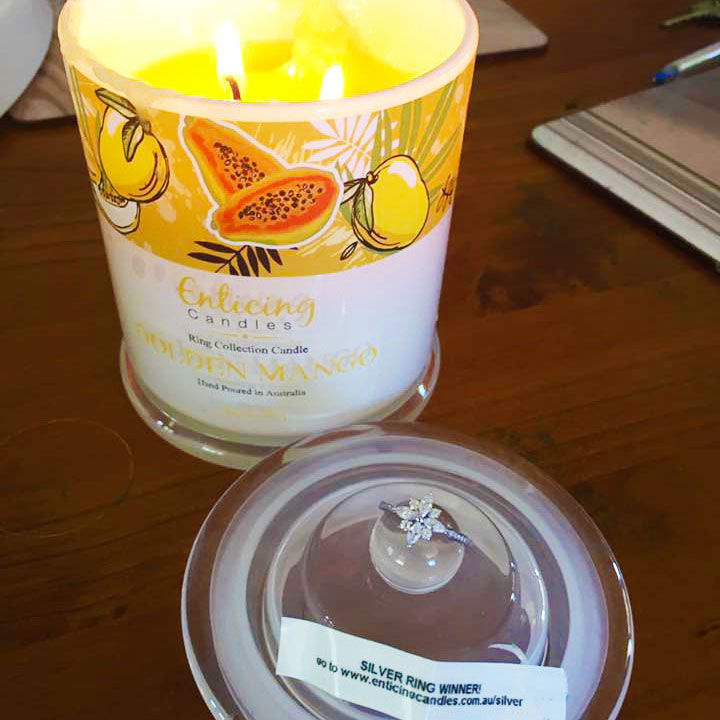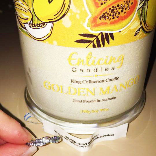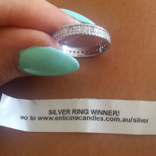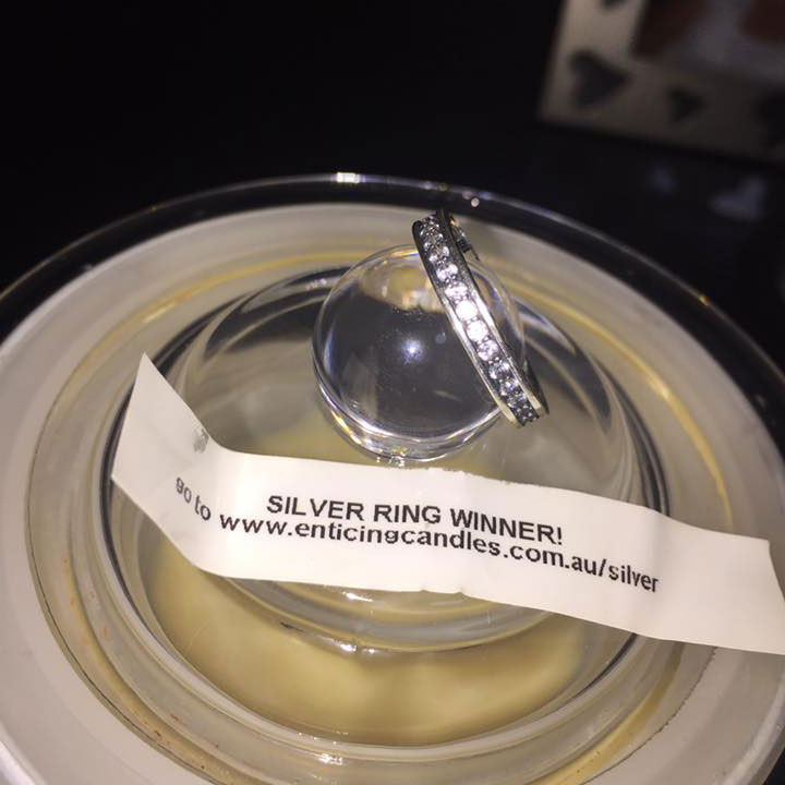One in twenty candles have a sterling silver ring valued up to $150. Click on image to scroll. For the full collection of sterling silver rings currently available in Enticing Candles see our Silver Winners Page Here.